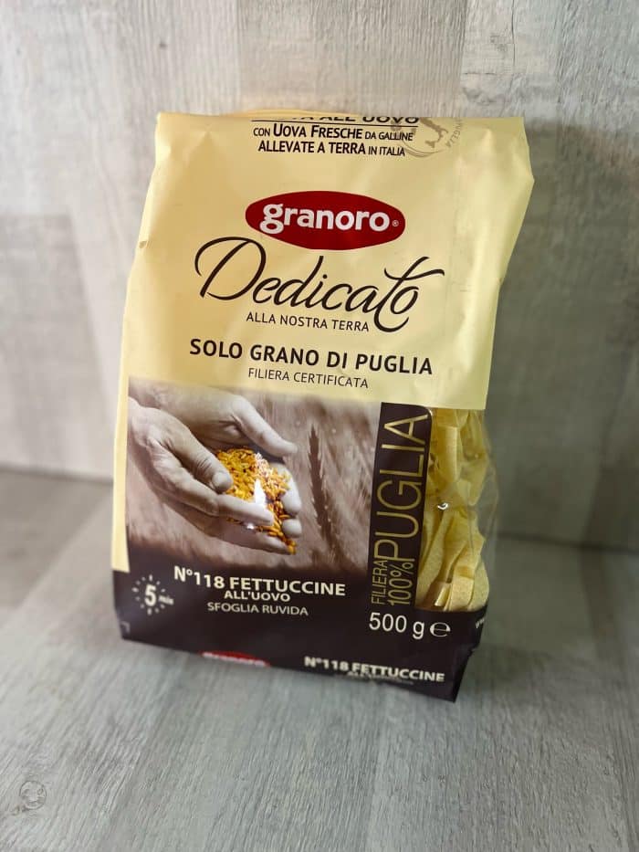 Los Fettuccine son una variedad de pasta larga y plana, similares a las cintas o las tiras. Están hechos con sémola de trigo duro 100% de la región de Puglia, en el sur de Italia. 500 grs.